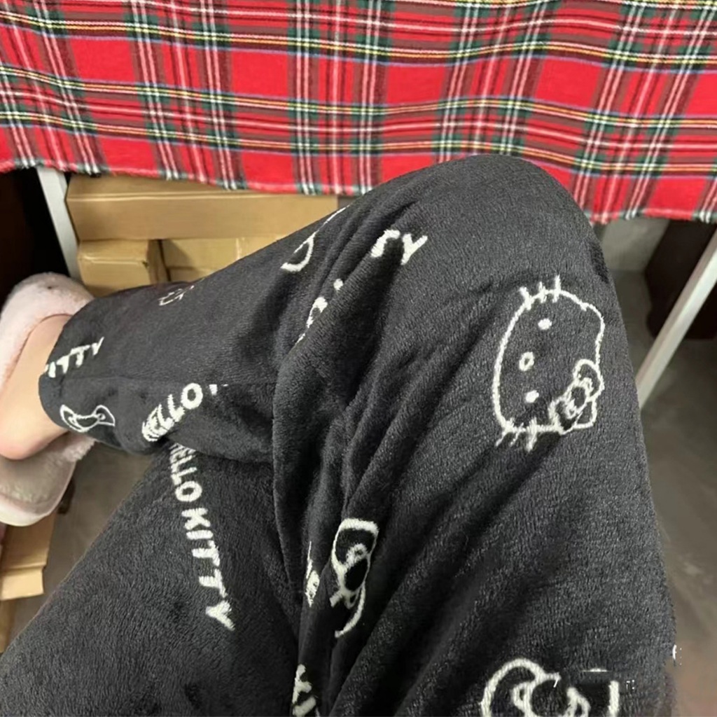2024 Sanrio Hello Kitty coral fleece pajamas soft trousers women's casual home pants cute birthday gift