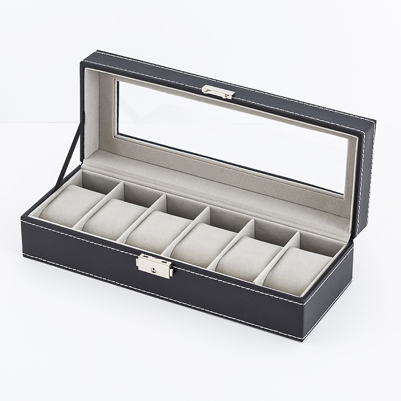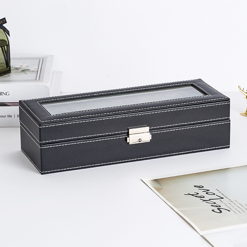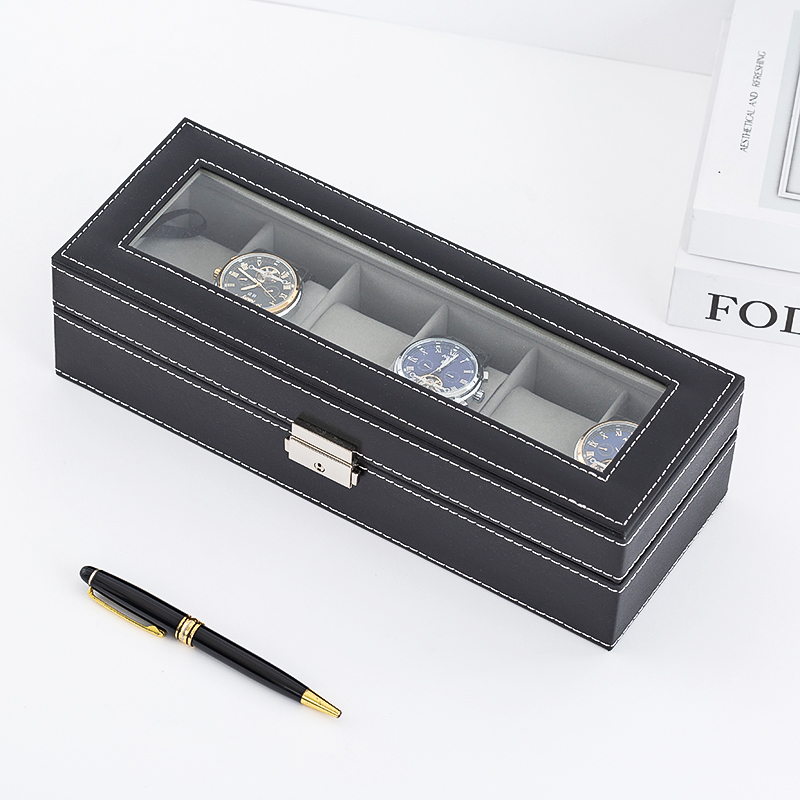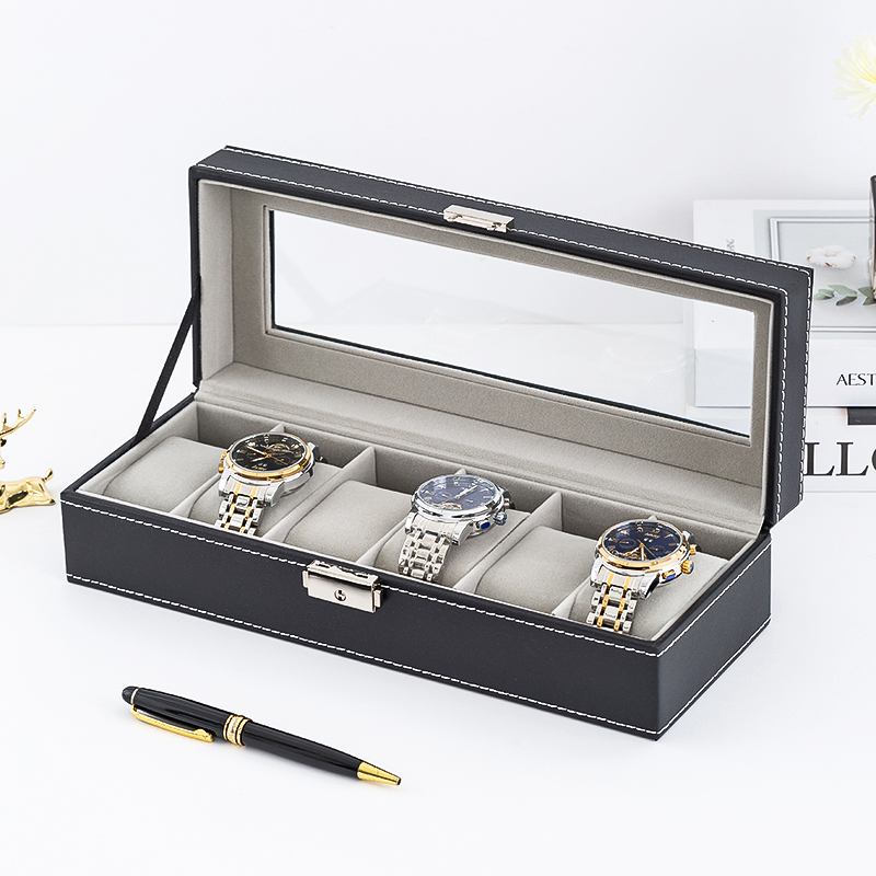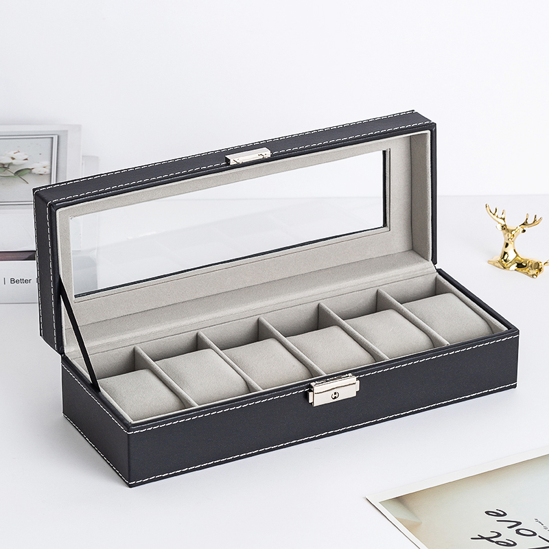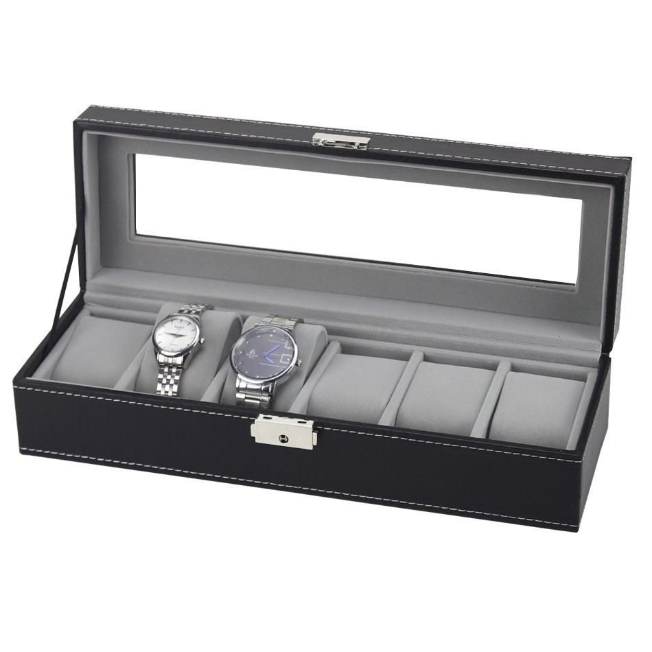 6 Slots Glass Top PVC Watch Box Storage Case Watch Box Jewelry Case Display Box Watch Case Watch Box