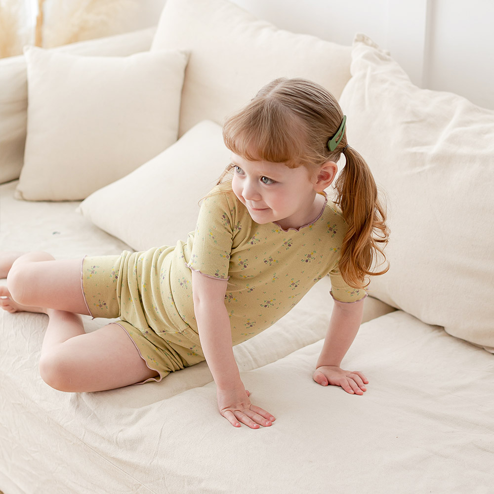 AVAUMA Baby Boys Girls Pajama Set 6M-7 Years Kids Toddler Snug fit Pjs Short-Sleeved Sleepwear Ruffle Shrring Lilly 02
