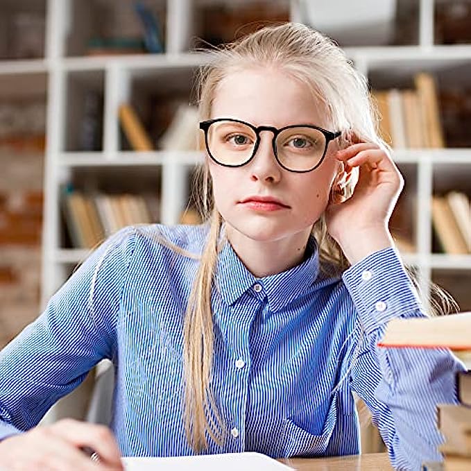 SIMPLE YET CLASSIC ELLIPSE DESIGN - Without complicated patterns and strange designs, PAZELY presents you with the ultimate simplicity of classic fashion. This blue light glasses is suitable for both men and women. The simple ellipse lens shape and 4 pairs frame can be matched with different looks, suitable for various daily and formal occasions.