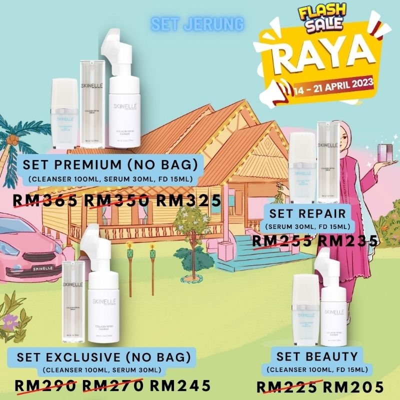 SKINELLE (No Bag) Premium set collagen peptide Jerung Premium Set Bunga Korea BTS Pink