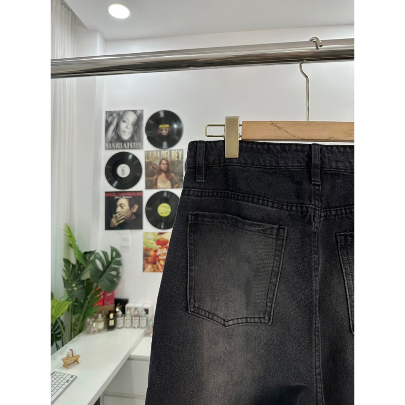 Baggy JEANS Wide Tube Smoke Gray Stripe 1007 FORM UNISEX (Real Photo)
