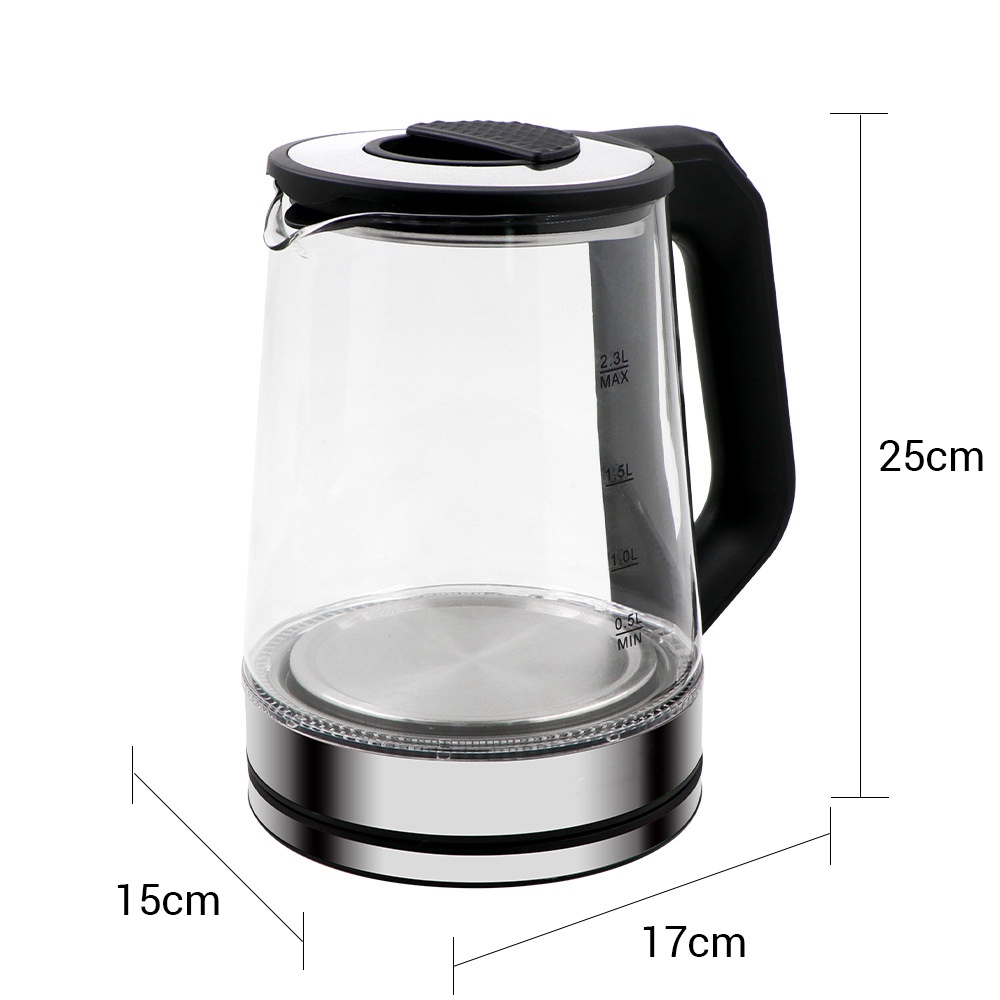 Electric 2.3L Glass Kettle Automatic Power-off LED Light Boil-Dry Protection Premium Water Bottle EH0036