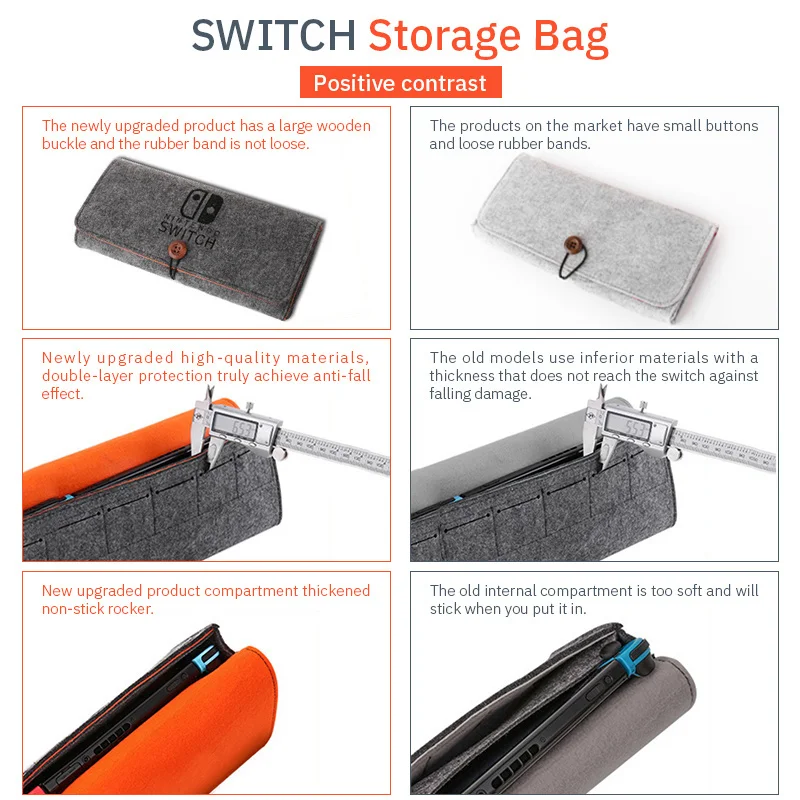 Jomaa Switch Felt Storage Bag Game Console Protective Case Nintendo Switch Multifunctional Game Card Charging Cable Case