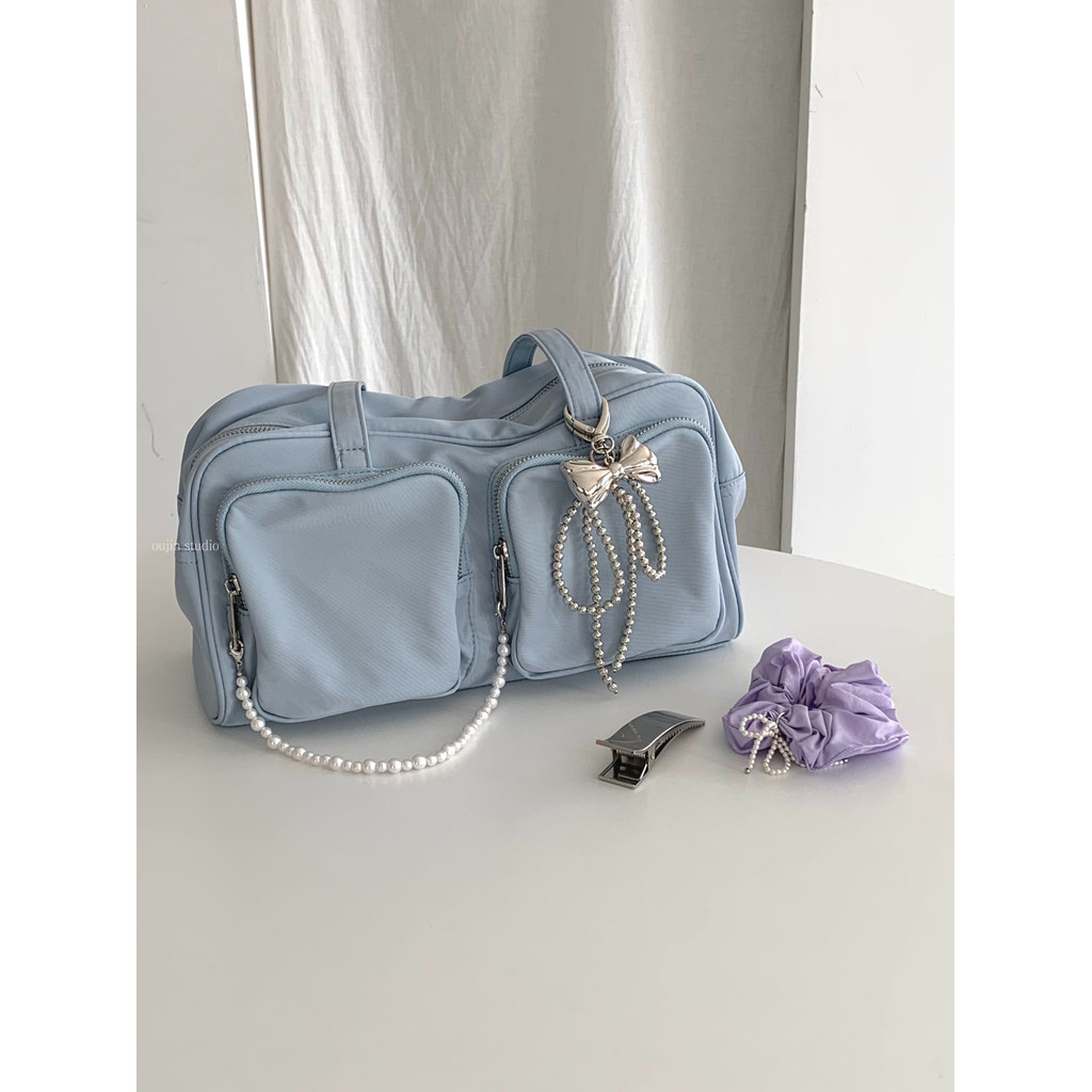 Korean Niche ins Sweet Girl Pearl Silver Bow Beaded Bag Pendant Car Keychain Bag Pendant