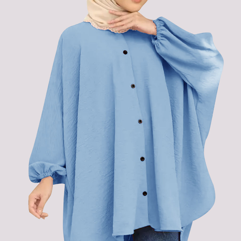 Korean Style Women Long Friendly Sleeve Blouse Italian Crepe Viral Shirt Baggy Top Blouse Viral / Free Size