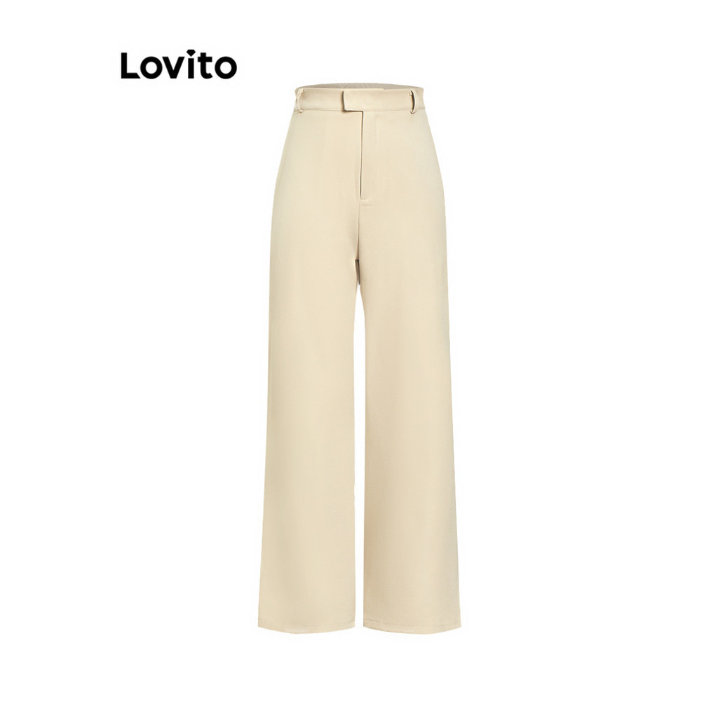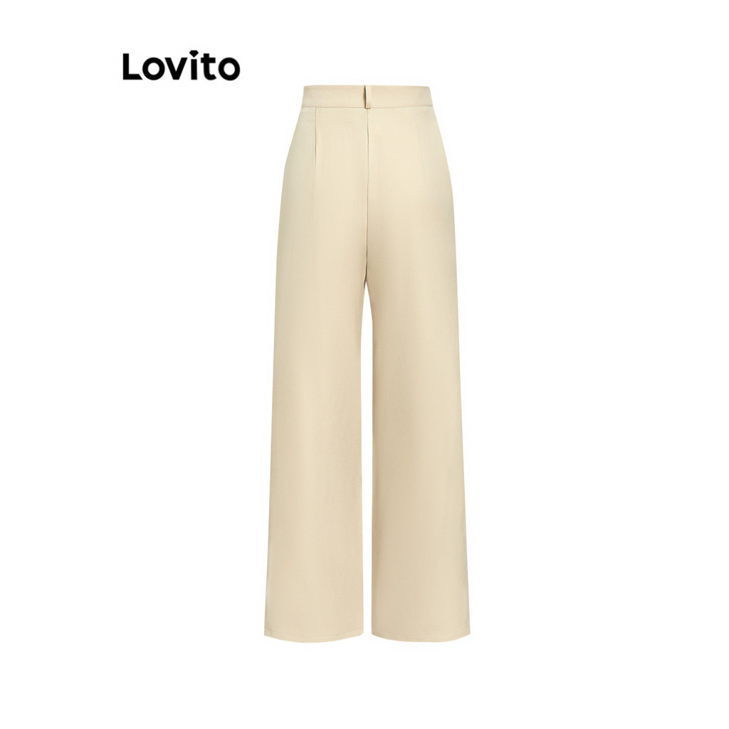 Lovito Casual Plain Pocket Pants for Women L67AD135 (Khaki)