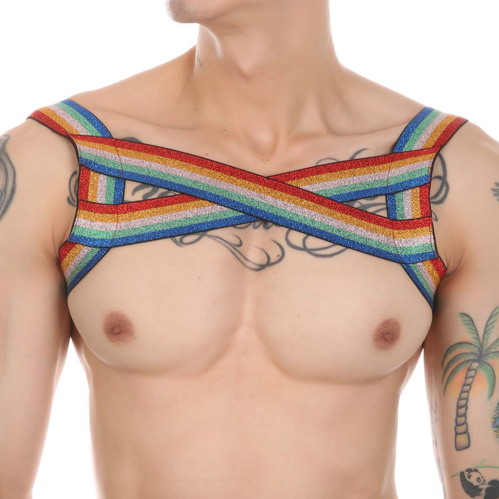 Mens Elastic Chest Muscle Harness Belt Sexy Chest Belt Hollow Out Nightclub Clothing