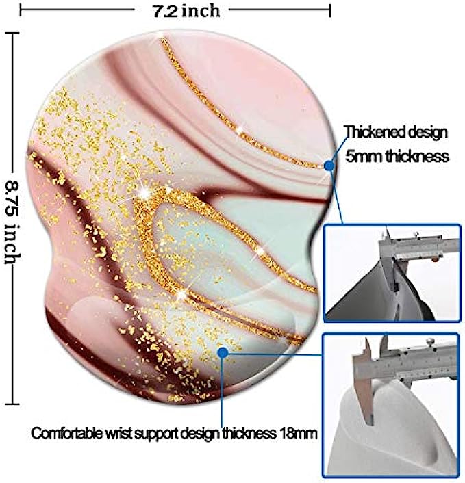 Mouse Pad with Wrist Support, Non Slip Mousepad Wrist Rest for Office, Computer, Laptop & Mac- Durable & Comfortable & Lightweight Ergonomic Support Mouse Mat (Pretty Marble-Wrist-5)
