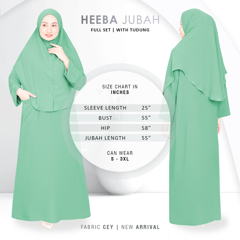 *New Season Arrival* HEEBA JUBAH Free Size With Tudung Sarung (Full Set) CEY Plain by H&H Exclusive