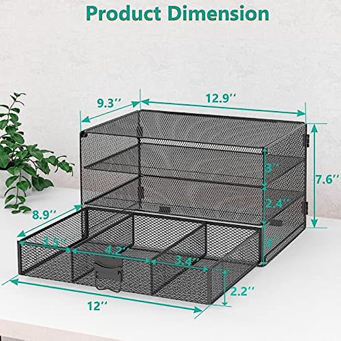 Paper Letter Tray Organizer, Mesh Drawer Desk Organizer DIY Storage Rack Stand Shelf for Office Accessories and Small Supplies (DO002-B), Black by WALI