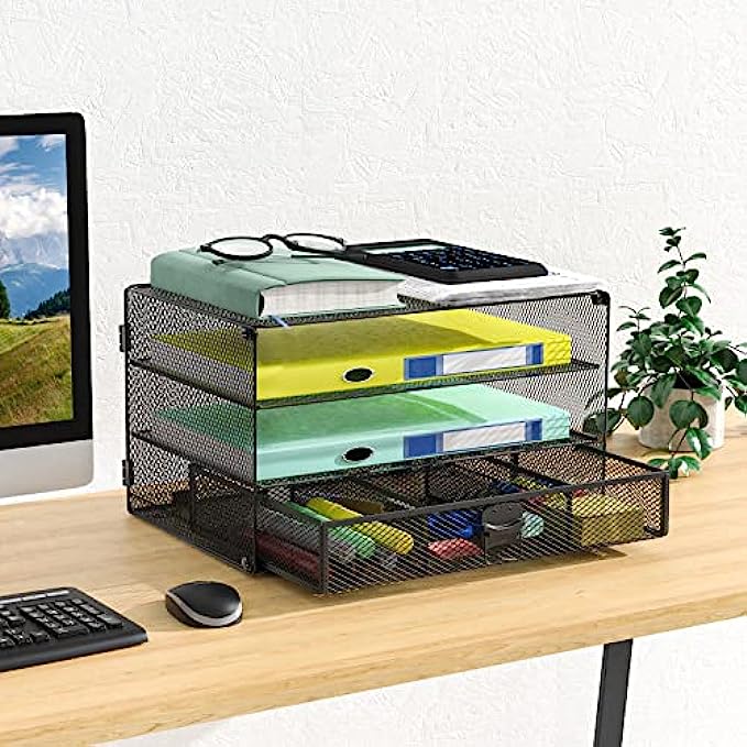 Storage and Organizer: 3 stackable file trays and 1 removable drawer for sorting and storing. Provide a functional way to store your items. Perfect to put away your desktop goods for offices, home, school, college dorm room and more.