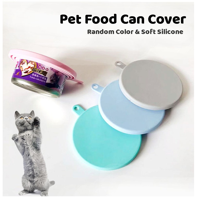 Pet Food Can Silicone Cover and Spoon Dogs & Cats Storage Tin Cap Lid Reusable Random Color
