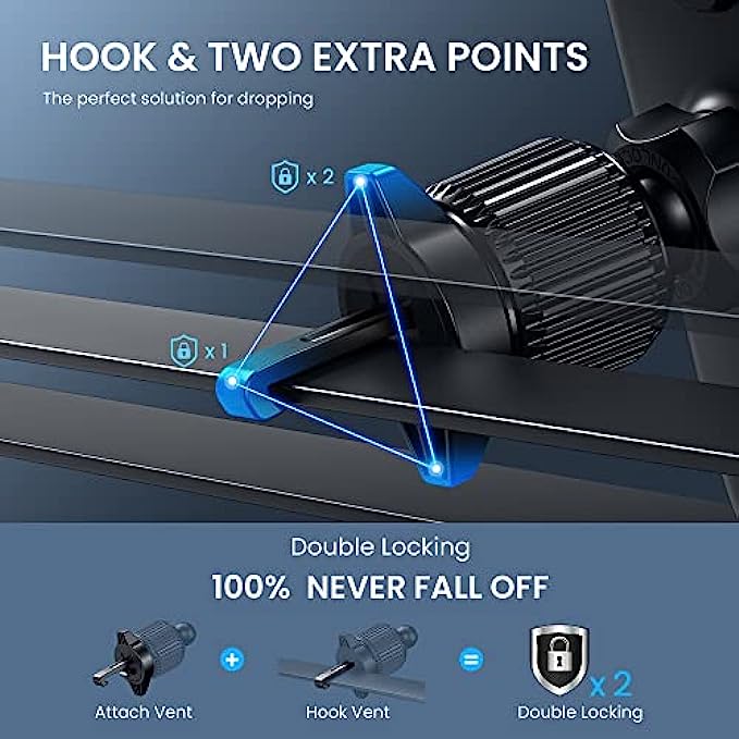 • Upgraded Vent Clip: The Car phone mount features a stronger, thinner vent clip and an innovative support ring for extra support, which could hold your phone securely on an air vent in your car. NOTE: THIS CAR MOUNT FOR PHONE is ONLY MATCHED WITH HORIZONTAL BLADE AIR VENTS
