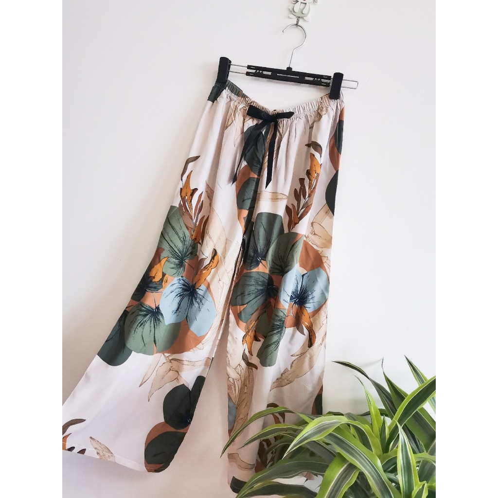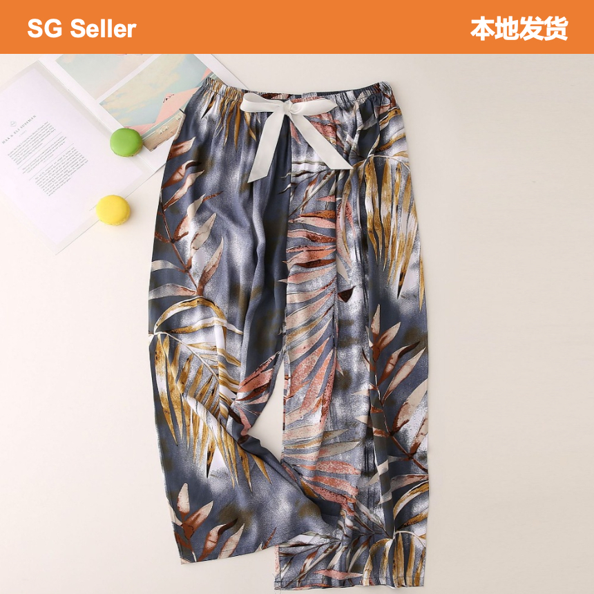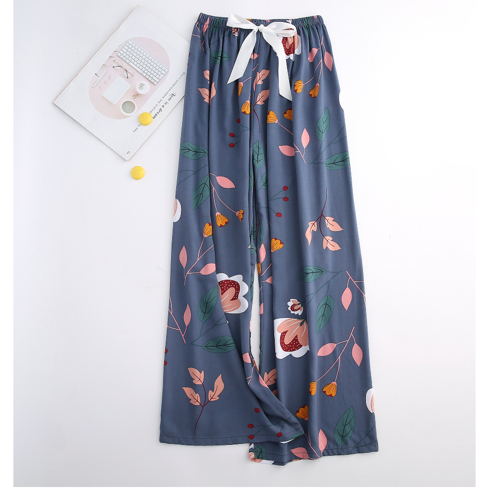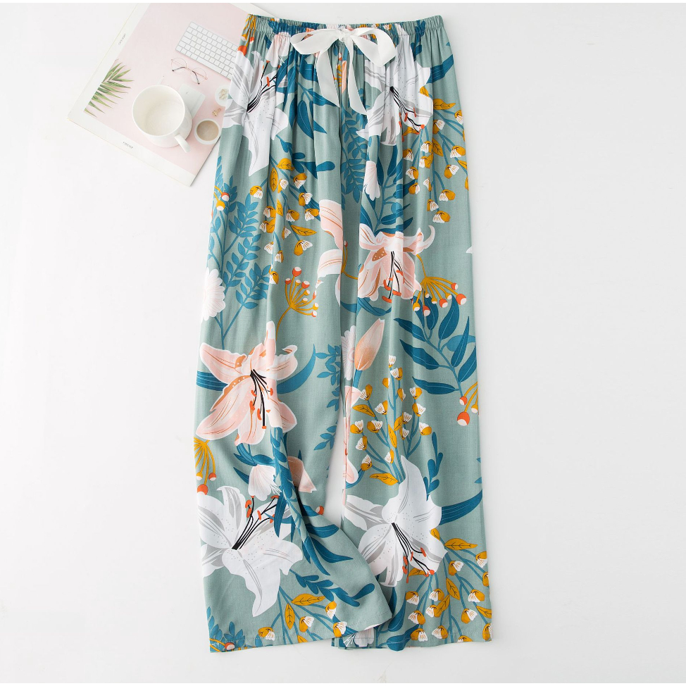【?SG Seller】Long Summer cotton silk women's high waist wide leg pants indoor outdoor