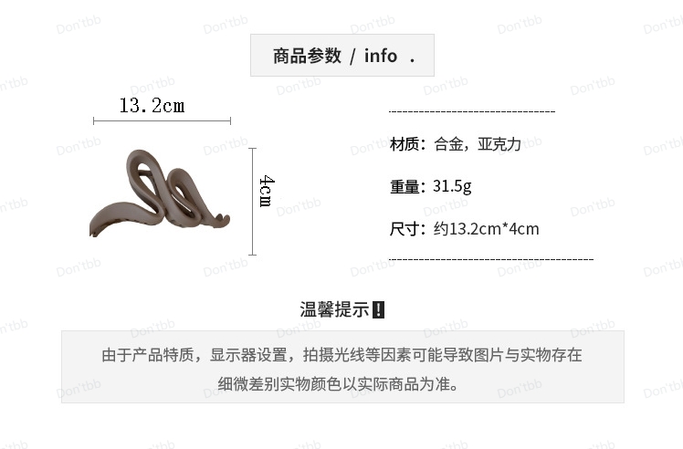 True to the description: dung Material: plastic material plastic Color: Brown color: Brown Beautiful hair clip, fast delivery and quite cheap price, I will continue to support