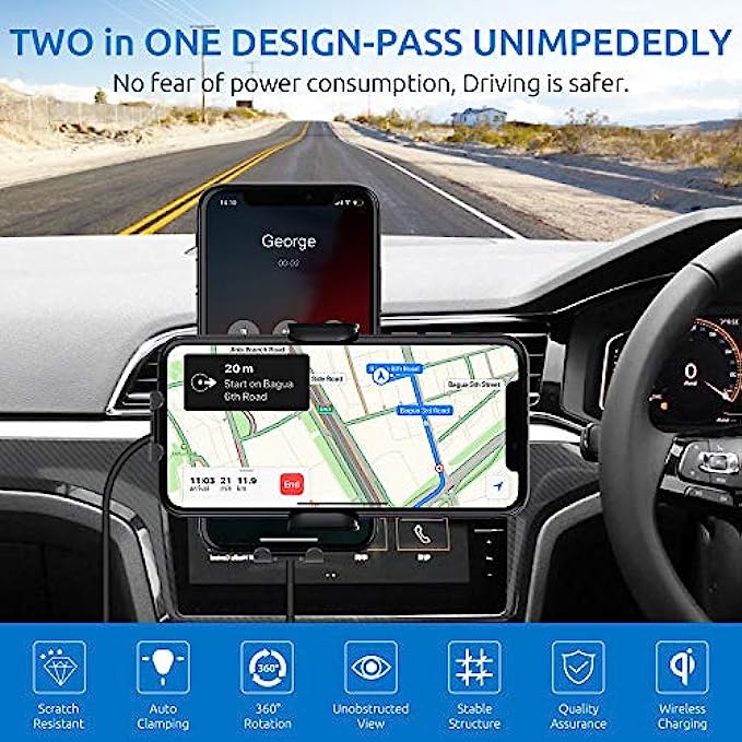 【QI WIRELESS CHARGER】Built-in upgraded chip, CHGeek wireless car charger intelligently identify and charges your device with the fastest speed in safe. Support max 15W max Fast Charger for LG V50 / V35 / V30, 10W Fast Charger for Samsung Galaxy S20/S20+, Max 7.5W Fast Charger for iPhone 11/11 Pro Max/1XS Max/XS/X, 5W for Other Qi-Enabled Phones.For 15W 10W, 7.5W fast charging mode, QC 3.0 car charger adapter is required as its power source.(1 * usb c charging cable is included in the package) 【INTELLIGENT IDENTIFICATION & SMART CHARGING】When connecting to the cable, the phone car mount will automatically clamp when phone is dropped in, make your driving easier and safer. A gentle touch on the 2 sides button of the charger can make the arms open. When your phone is fully charged, the wireless car phone charger will automatically power off and protect the battery of your phone 【FOREIGN OBJECT DETECTION with LED ALARM】When there is a metal substance between the wireless car charger mount and the phone, the car wireless charger will stop charging and the red light flashes to alarm. Effectively avoid the damage of the mobile phone caused by the high temperature of the metal 【CASE FRIENDLY & FLEXIBLE ANGLE ADJUSTMENT】CHGeek phone holder for car supports charging through phones cases up to 6mm thick. Please note that cases made of metal, external attachments such as magnets, credit cards, grips, and stands will interfere with charging. The 360°rotating sphere and the retractable & foldable bracket allows for optimum viewing and safe driving 【2-IN-1 Design】 Combines the Qi Wireless Charger and a car cell phone holder, allows for a secure hands-free experience. Keep you away from the tangled locating cords or cables. Cell phone holder is suitable for car Windshield Dashboard Air Vent installation, and makes GPS and phone call more convenient