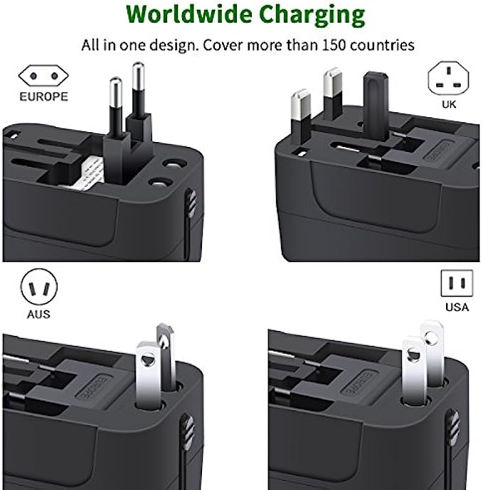 UNIVERSAL WORLDWIDE CHARGING - This travel adapter Accepts Plugs from More than 150 Countries with US/EU/UK/AU european Plugs like Thailand, New Zealand, Israel, Italy, Rome, France, Spain, Canada, China, Australia, India, Hong Kong, Argentina, Peru, Korea, Asia, etc SAFETY PROTECTION - this International Travel Power Adapter built-In safety shutters protect users from the direct touch of the live parts on the socket outlet All IN ONE - Detachable charger includes 5 Different Input Plugs Tightly Connect into 1 Adaptor DUAL USB CHARGING PORTS - World Adapter Plug compatible with almost all USB Devices like Apple iPhone x 8 8 plus 7 7s 6 6s 5s 4s, Sony, Blackberry, HTC, Lenovo, LG, ZTE, Huawei, and so on. SPECIFICATIONS - Power Rating 6A max. 100-240Vac (660W max. at 110Vac. 1380W max. at 230Vac) This Charger Adapter Plug Converts the Power Outlet Only, It Does Not Convert Electrical Output Current and Voltage. MIZO offers 24-Months limited product warranty and 24h*7d Customer Service from MIZO